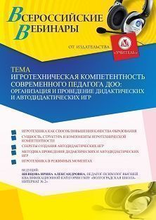 Вебинар «Игротехническая компетентность современного педагога ДОО: организация и проведение дидактических и автодидактических игр»