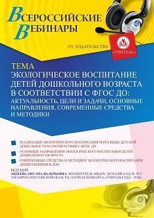 Вебинар «Экологическое воспитание детей дошкольного возраста в соответствии с ФГОС ДО: актуальность, цели и задачи, основные направления, современные средства и методики»