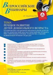 Вебинар «Речевое развитие детей дошкольного возраста: планирование ежедневной образовательной деятельности, комплексный диагностический инструментарий, современные игровые технологии, создание развивающей речевой среды ДОО»