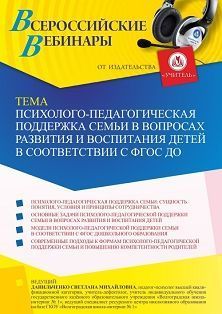 Вебинар «Психолого-педагогическая поддержка семьи в вопросах развития и воспитания детей в соответствии с ФГОС ДО»