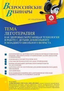 Вебинар «Леготерапия как здоровьесберегающая технология в работе с детьми дошкольного и младшего школьного возраста»