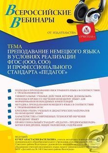 Вебинар «Преподавание немецкого языка в условиях реализации ФГОС (ООО, СОО) и профессионального стандарта "Педагог"»