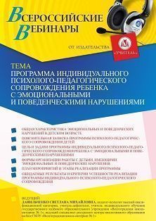Вебинар «Программа индивидуального психолого-педагогического сопровождения ребенка с эмоциональными и поведенческими нарушениями»