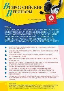 Вебинар «Комплексно-тематическое планирование культурно-досуговой деятельности в ДОО на основе положений ФГОС ДО: сценарии праздников, развлечений утренников, мини-спектаклей, концертов, квестов, эстафет, детско-взрослых вечеров отдыха»
