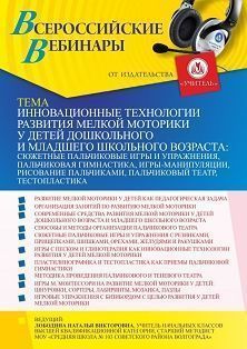 Вебинар «Инновационные технологии развития мелкой моторики у детей дошкольного и младшего школьного возраста: сюжетные пальчиковые игры и упражнения, пальчиковая гимнастика, игры-манипуляции, рисование пальчиками, пальчиковый театр, тестопластика»