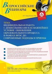 Вебинар «Индивидуальная работа с дошкольниками как важнейшее условие обновления образовательного процесса в рамках ФГОС ДО: современные подходы и приемы»