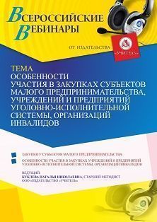 Вебинар «Особенности участия в закупках субъектов малого предпринимательства, учреждений и предприятий уголовно-исполнительной системы, организаций инвалидов»