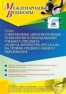Международный вебинар «Современные образовательные технологии в преподавании учебного предмета “Родная литература (русская)” на уровне среднего общего образования»
