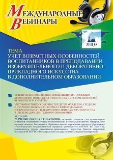 Международный вебинар «Учет возрастных особенностей воспитанников в преподавании изобразительного и декоративно-прикладного искусства в дополнительном образовании»