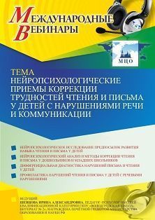 Международный вебинар «Нейропсихологические приемы коррекции трудностей чтения и письма у детей с нарушениями речи и коммуникации»