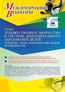 Международный вебинар «Художественное творчество в системе дополнительного образования детей: понятие, типы, разнообразие видов, особенности»