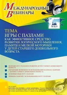 Международный вебинар «Игры с пазлами как эффективное средство развития логического мышления, памяти и мелкой моторики у детей старшего дошкольного возраста»