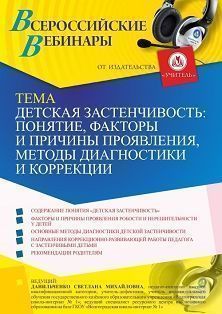 Вебинар «Детская застенчивость: понятие, факторы и причины проявления, методы диагностики и коррекции»