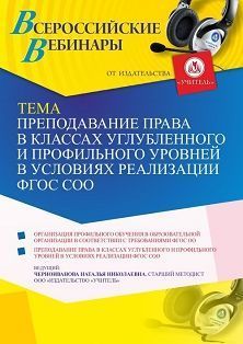 Вебинар «Преподавание права в классах углубленного и профильного уровней в условиях реализации ФГОС СОО»