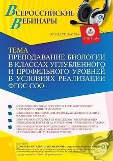 Вебинар «Преподавание биологии в классах углубленного и профильного уровней в условиях реализации ФГОС СОО»