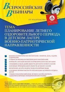 Вебинар «Планирование летнего оздоровительного периода в детском лагере военно-патриотической направленности»