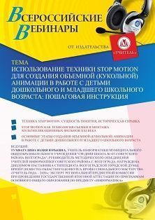 Вебинар «Использование техники Stop Motion для создания объемной (кукольной) анимации в работе с детьми дошкольного и младшего школьного возраста: пошаговая инструкция»