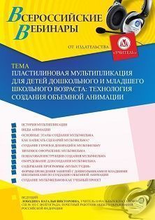 Вебинар «Пластилиновая мультипликация для детей дошкольного и младшего школьного возраста: технология создания объемной анимации»