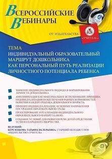 Вебинар «Индивидуальный образовательный маршрут дошкольника как персональный путь реализации личностного потенциала ребенка»