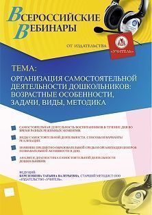 Вебинар «Организация самостоятельной деятельности дошкольников: возрастные особенности, задачи, виды, методика»