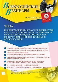Вебинар «Индивидуальная работа с дошкольниками в ДОО: цели и задачи, виды, планирование, приемы организации в соответствии с возрастными и индивидуальными особенностями»