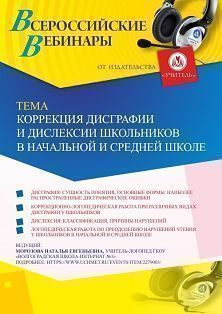 Вебинар «Коррекция дисграфии и дислексии школьников в начальной и средней школе»