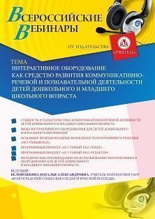 Вебинар «Интерактивное оборудование как средство развития коммуникативно-речевой и познавательной деятельности детей дошкольного и младшего школьного возраста»