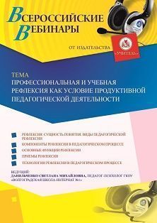 Вебинар «Профессиональная и учебная рефлексия как условие продуктивной педагогической деятельности»