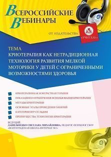 Вебинар «Криотерапия как нетрадиционная технология развития мелкой моторики у детей с ограниченными возможностями здоровья»