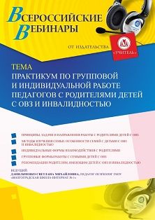 Вебинар «Практикум по групповой и индивидуальной работе педагогов с родителями детей с ОВЗ и инвалидностью»
