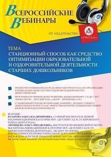 Вебинар «Станционный способ как средство оптимизации образовательной и оздоровительной деятельности старших дошкольников»