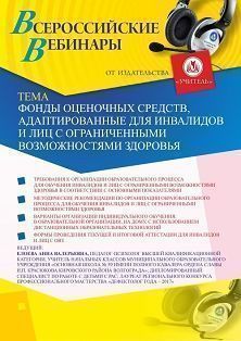 Вебинар «Фонды оценочных средств, адаптированные для инвалидов и лиц с ограниченными возможностями здоровья»