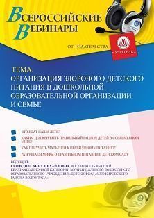 Вебинар «Организация здорового детского питания в дошкольной образовательной организации и семье»