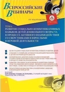 Вебинар "Развитие социально-коммуникативных навыков детей дошкольного возраста в процессе активного взаимодействия со сверстниками и взрослыми в игровой деятельности"