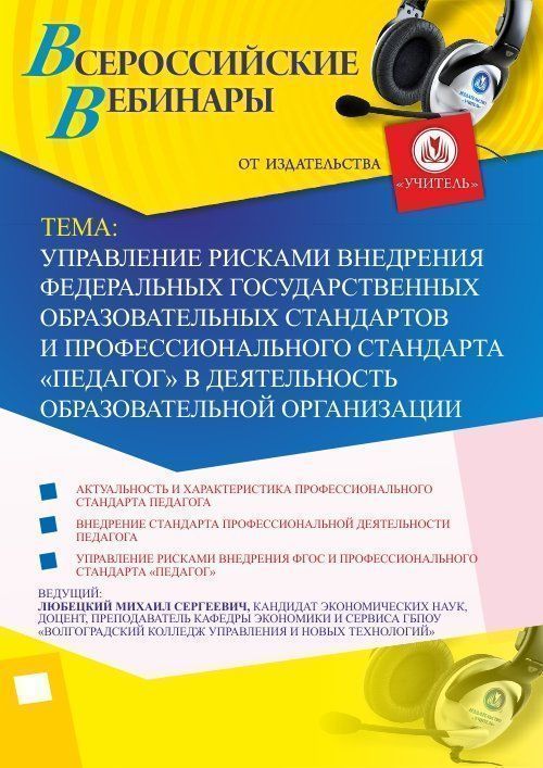 Вебинар «Управление рисками внедрения федеральных государственных образовательных стандартов и профессионального стандарта "Педагог" в деятельность образовательной организации»