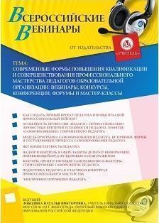 Вебинар "Современные формы повышения квалификации и совершенствования профессионального мастерства педагогов образовательной организации: вебинары, конкурсы, конференции, форумы и мастер-классы"