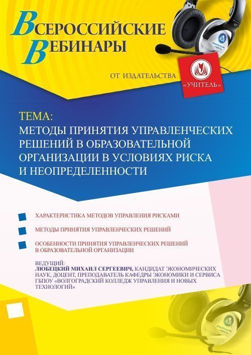 Приглашаем директоров, руководителей, заведующих принять участие в offline-вебинаре «Методы принятия управленческих решений в образовательной организации в условиях риска и неопределенности».