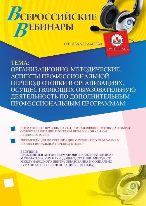 Вебинар "Организационно-методические аспекты профессиональной переподготовки в организациях, осуществляющих образовательную деятельность по дополнительным профессиональным программам"