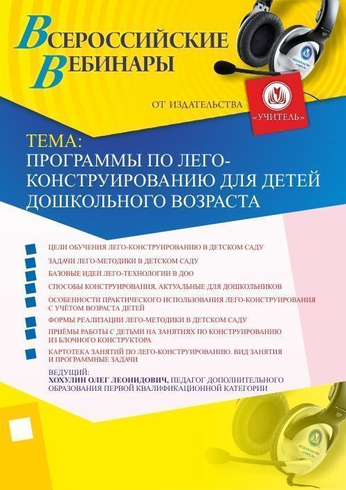 Приглашаем воспитателей ДО, педагогов дополнительного образования, методистов принять участие в offline-вебинаре «Программы по лего-конструированию для детей дошкольного возраста».