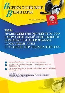 Вебинар «Реализация требований ФГОС СОО в образовательной деятельности. Образовательная программа и локальные акты в условиях перехода на ФГОС СОО»