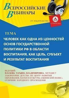 Вебинар «Человек как одна из ценностей основ государственной политики РФ в области воспитания, как цель, субъект и результат воспитания»