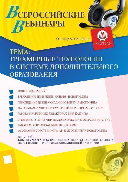 Приглашаем педагогов дополнительного образования, методистов принять участие в offline-вебинаре «Трехмерные технологии в системе дополнительного образования».