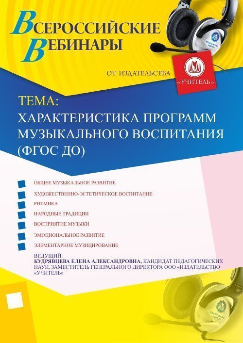 Приглашаем воспитателей, директоров, руководителей, заведующих, музыкальных руководителей, педагогов дополнительного образования принять участие в offline-вебинаре «Характеристика программ музыкального воспитания (ФГОС ДО)».