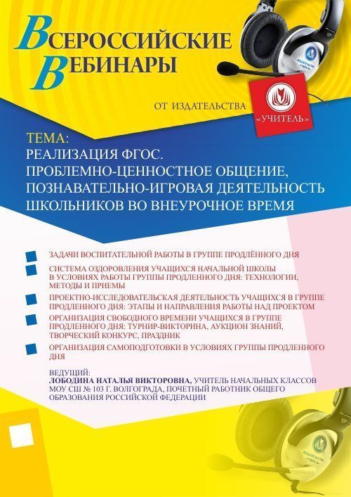 Приглашаем учителей начальных классов, педагогов-организаторов, педагогов дополнительного образования, воспитателей принять участие в offline-вебинаре «Реализация ФГОС. Проблемно-ценностное общение, познавательно-игровая деятельность школьников во внеурочное время».