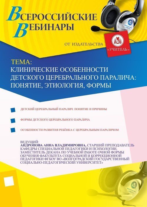 Приглашаем педагогов-психологов, специальных педагогов, методистов, родителей принять участие в offline-вебинаре «Клинические особенности детского церебрального паралича: понятие, этиология, формы».