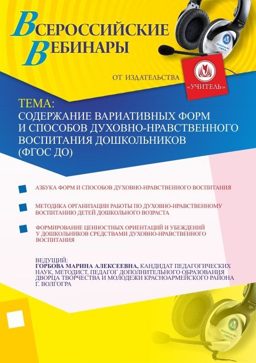 Приглашаем методистов, учителей, педагогов дополнительного образования, педагогов-организаторов принять участие в offline-вебинаре «Содержание вариативных форм и способов духовно-нравственного воспитания дошкольников (ФГОС ДО)».