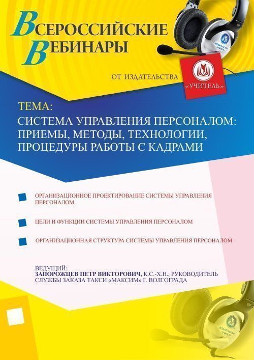 Приглашаем руководителей, методистов, документоведов, специалистов отдела кадров, помощников руководителя принять участие в offline-вебинаре «Система управления персоналом: приемы, методы, технологии, процедуры работы с кадрами».