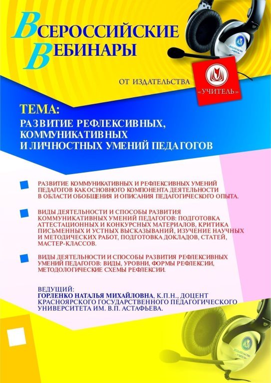 Приглашаем педагогов и специалистов образовательных учреждений, заместителей руководителя по УМР, методистов ОО, руководителей МО, студентов педагогических вузов и ссузов принять участие в offline-вебинаре «Развитие рефлексивных, коммуникативных и личностных умений педагогов».