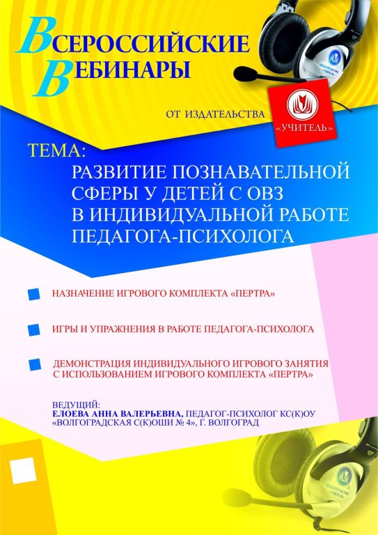 Приглашаем психологов, педагогов-психологов, дефектологов, логопедов, специалистов по коррекционной педагогике, методистов и старших воспитателей ДОО принять участие в offline-вебинаре «Развитие познавательной сферы у детей с ОВЗ в индивидуальной работе педагога-психолога».