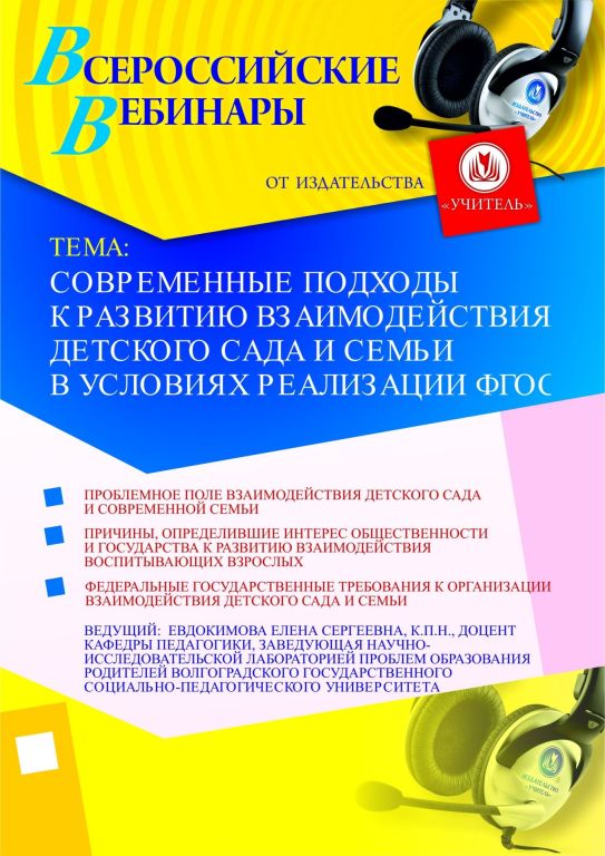 Приглашаем руководителей, заместителей по воспитательной и методической работе, педагогов-психологов, воспитателей ДОО, родителей принять участие в offline-семинаре по теме «Современные подходы к развитию взаимодействия детского сада и семьи в условиях реализации ФГОС».